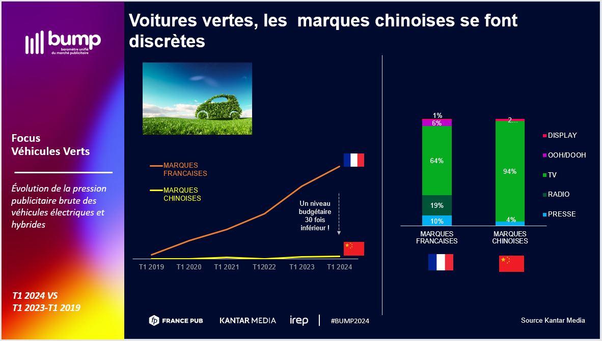 Au cours du premier trimestre 2024, l'investissement brut en publicité pour les véhicules électriques et hybrides a atteint 428 millions d’euros sur l’ensemble des médias. Dans ce contexte, les marques chinoises n’ont représenté que 2% de ce montant, affichant ainsi une présence discrète sur le marché français.